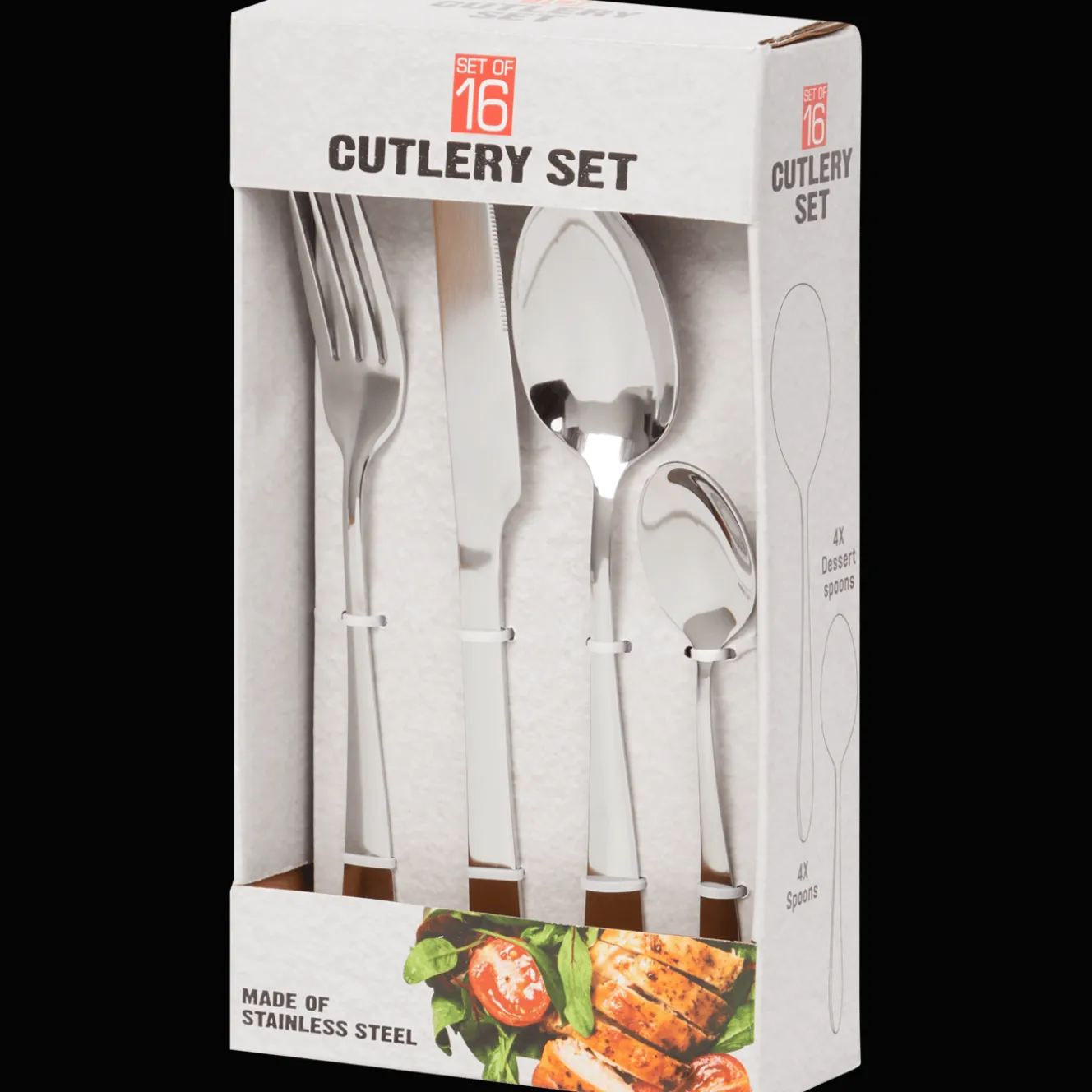 | Soort bestek | Vork (geen wegwerpartikel), Lepel (geen wegwerpartikel), Mes (geen wegwerpartikel) |