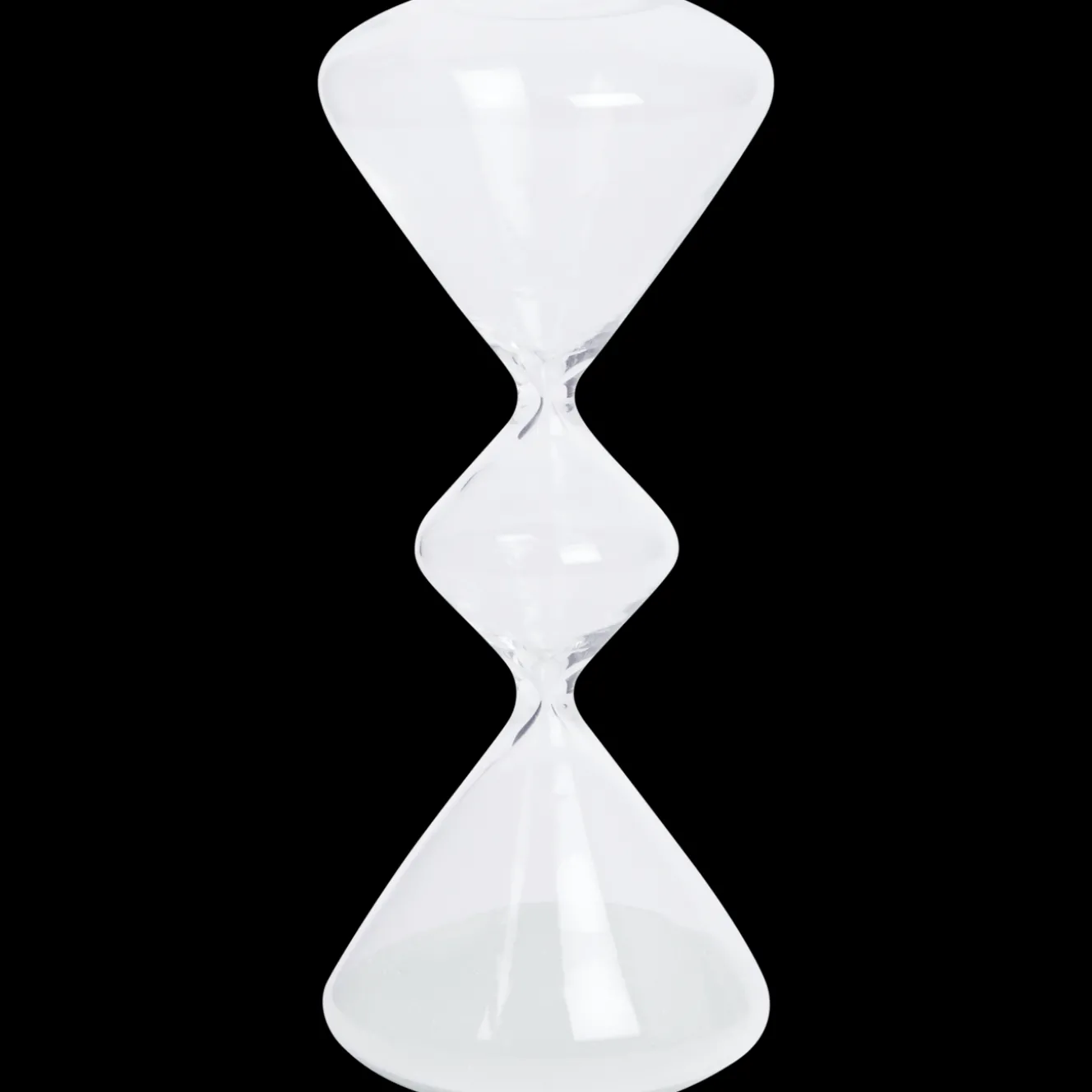 Deze klassieke glazen zandloper doet het altijd goed als decoratie.