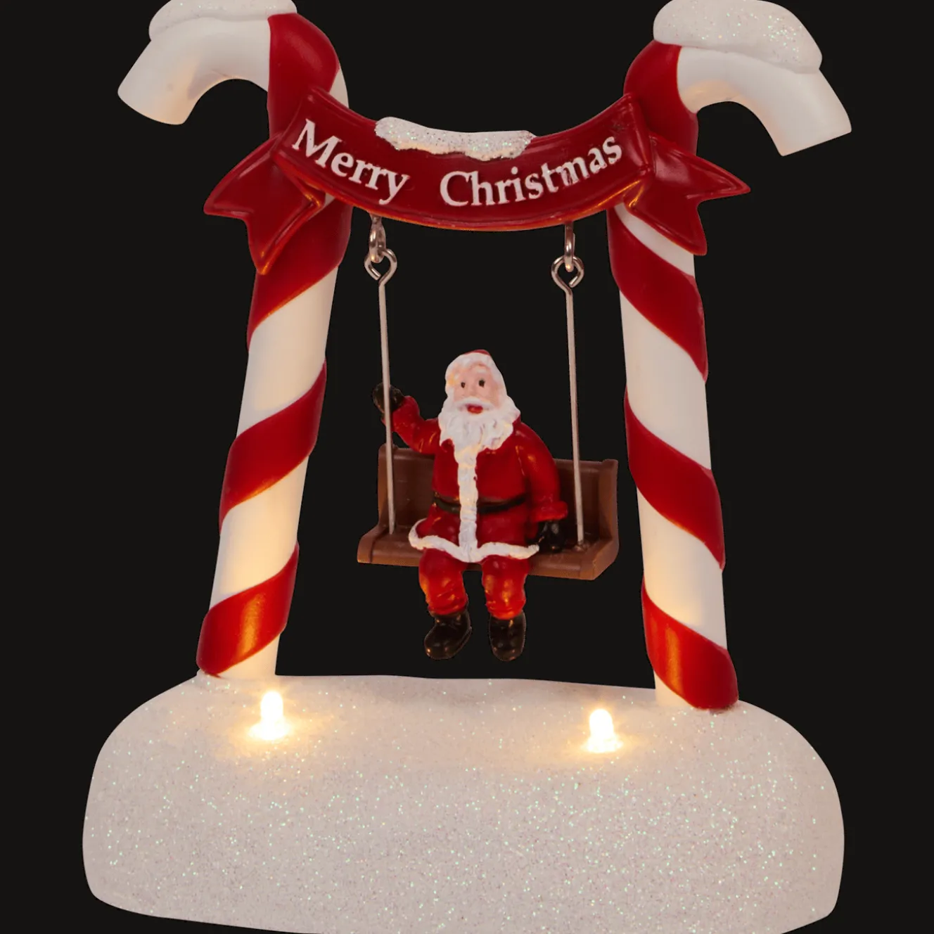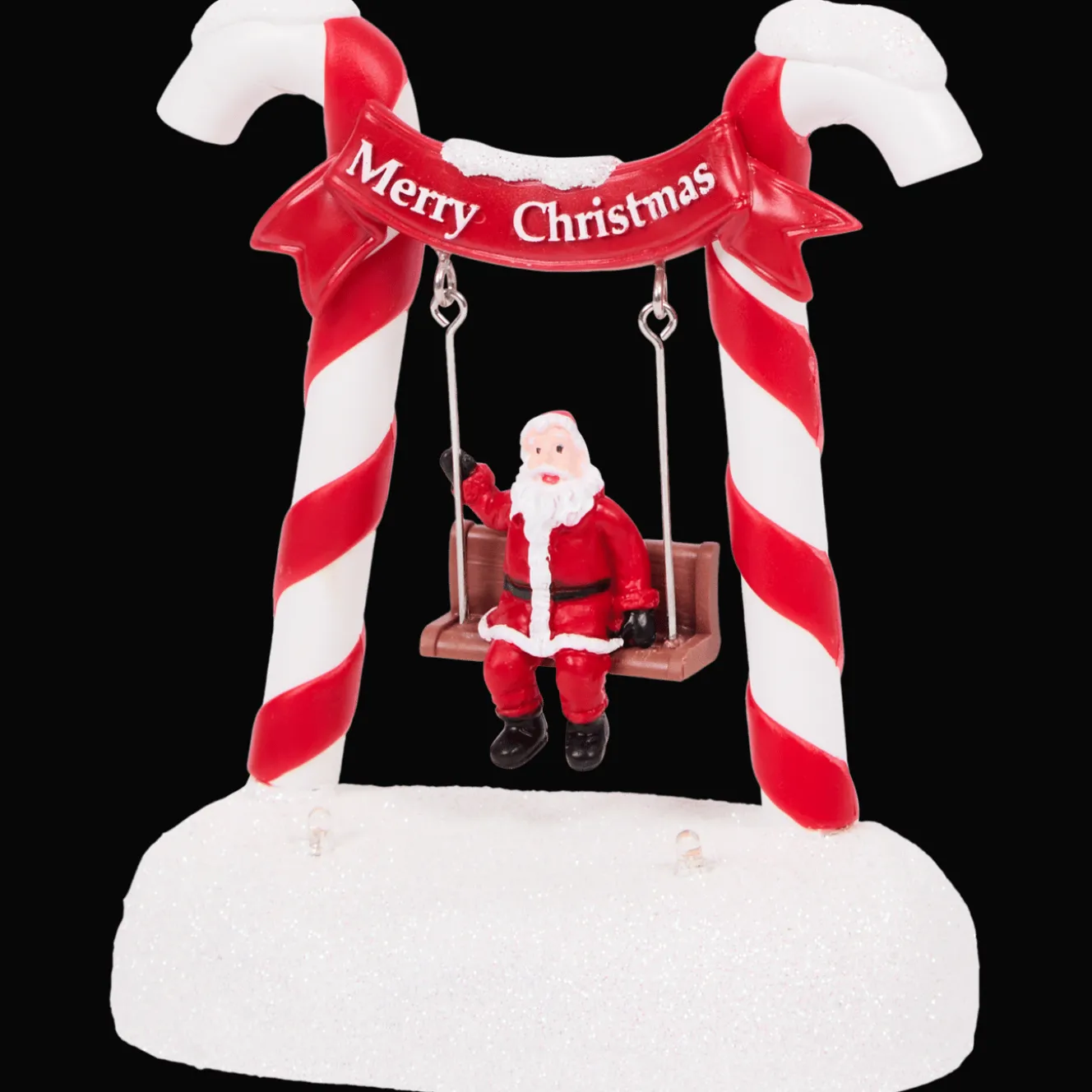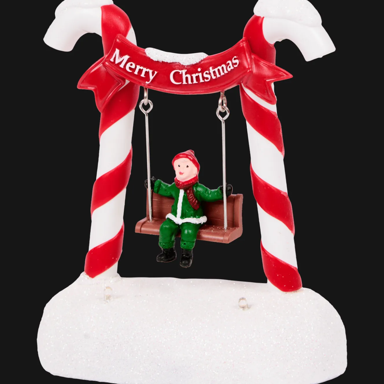 Maak je kerstdorp extra magisch met deze vrolijke schommel! De schommelende figuurtjes, fonkelende lichtjes en speelse details zoals candy cane pilaren of sneeuw bedekte bomen brengen meteen leven in je dorpje.