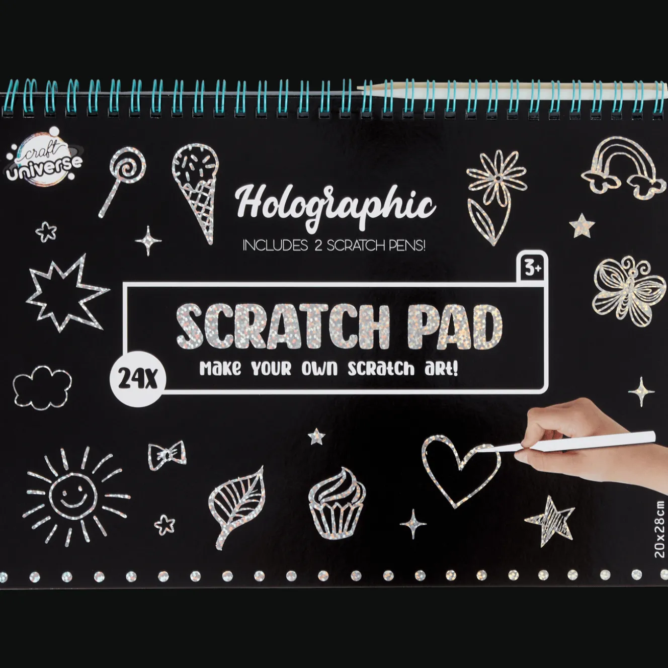 Tover de mooiste creaties tevoorschijn door de zwarte laag weg te krassen met de speciale pen.