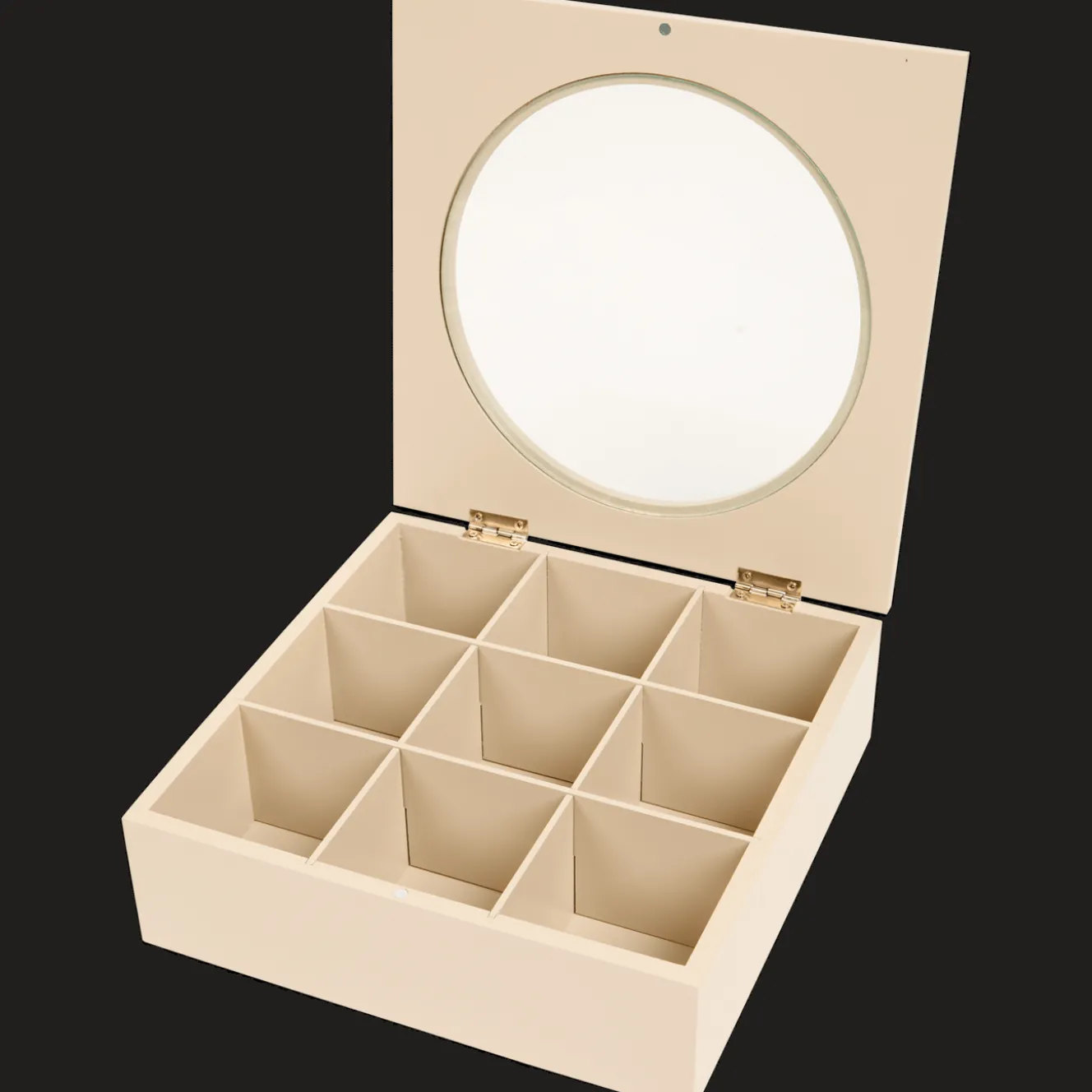 Deze houten opbergdoos met 9 handige vakjes houdt al je kleine spulletjes netjes geordend. Van sieraden en knopen tot theezakjes, alles krijgt z’n eigen plekje. Het kijkraampje in de deksel zorgt ervoor dat je in één oogopslag ziet wat erin zit.