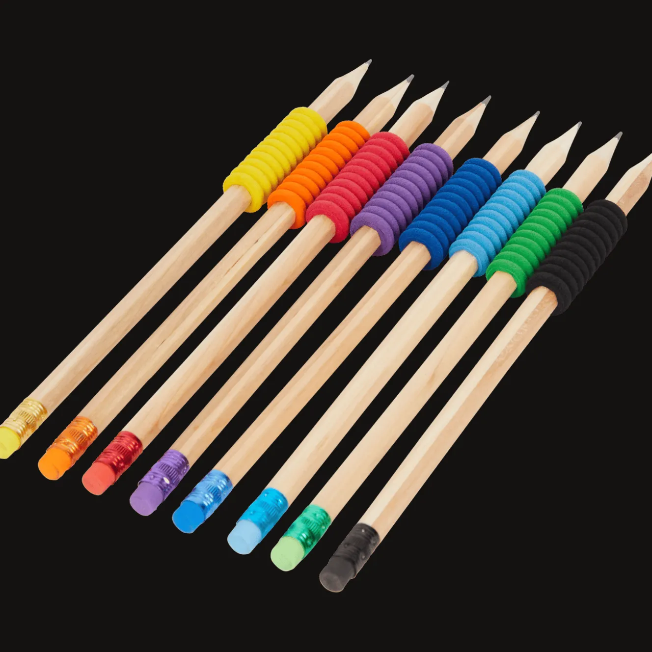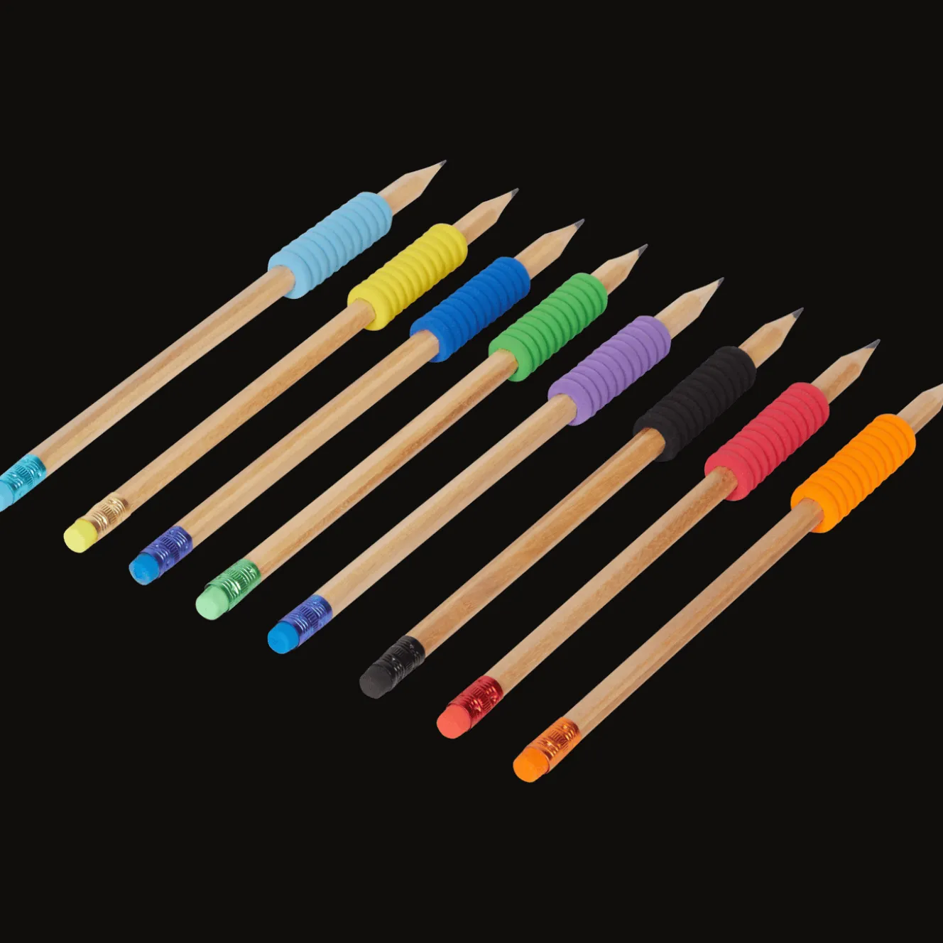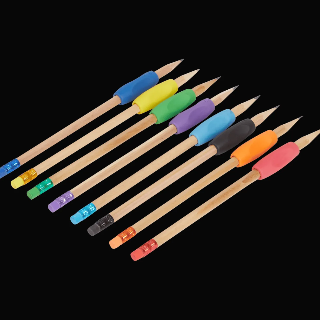 Handige set potloden met extra grip, in verschillende kleuren.