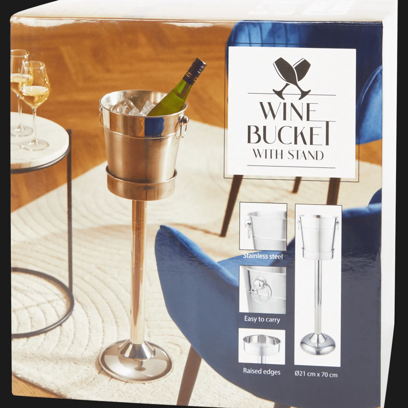 Deze wijnkoeler met standaard voegt een vleugje klasse toe aan elke gelegenheid! Met zijn slanke ontwerp houdt hij je favoriete wijn lekker koud en bespaart hij ruimte op de tafel voor al die heerlijke gerechten. Dus haal die fles tevoorschijn, zet hem in de koeler en geniet van een perfect gekoeld wijntje.