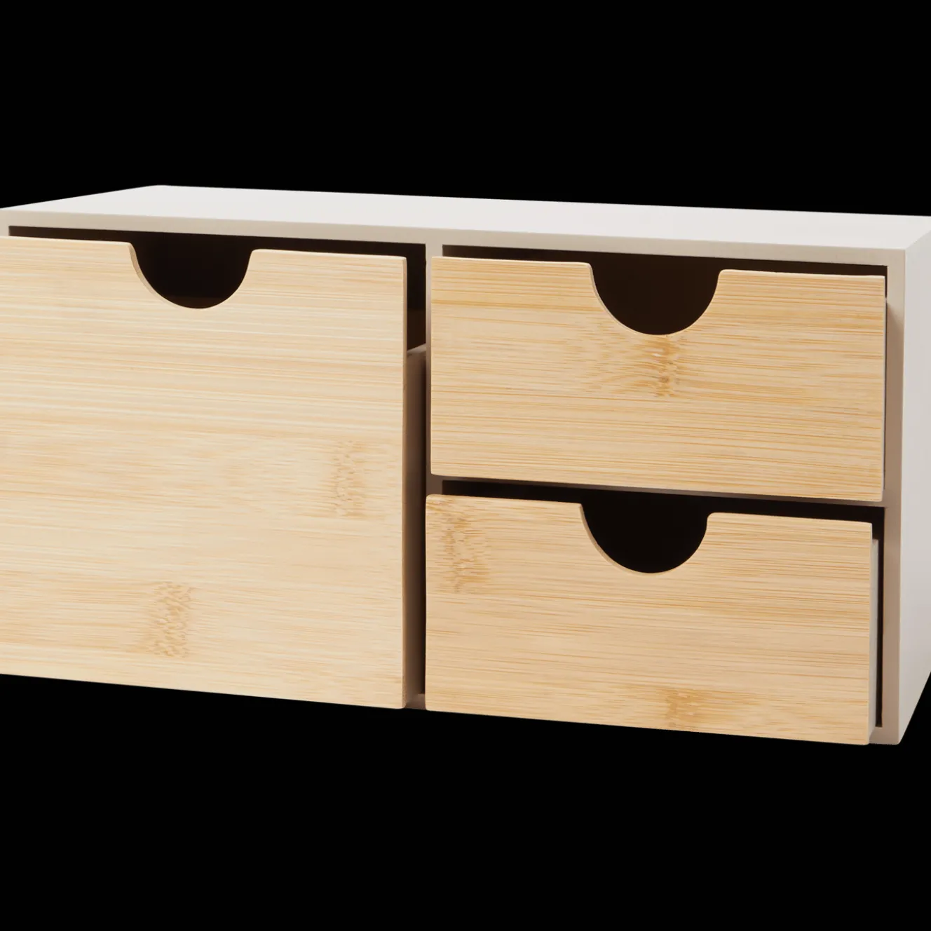 Hou je knutselspullen, sieraden of kantoorbenodigdheden netjes opgeborgen in dit kastje van bamboe. Hij heeft 3 lades en is gemaakt van duurzaam bamboe.