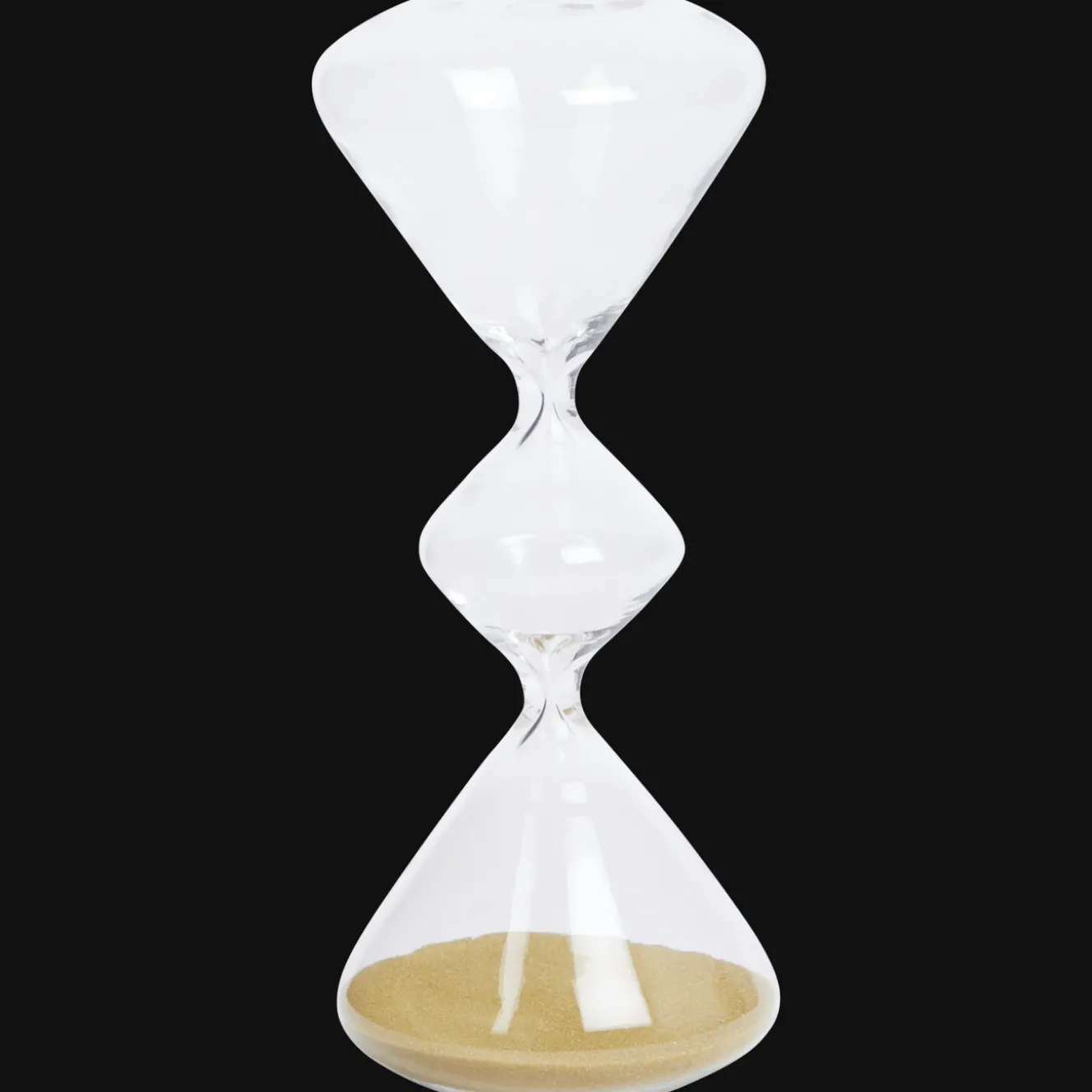 Deze klassieke glazen zandloper doet het altijd goed als decoratie.