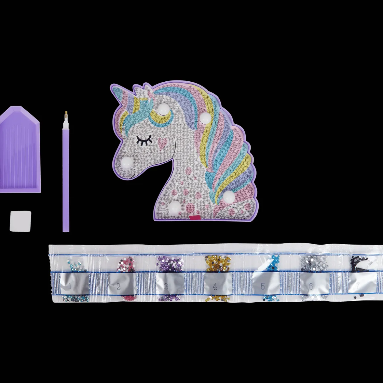 Laat de schitterende fantasie van kids werkelijkheid worden door deze diamond painting te maken. Met de applicator kunnen ze zelf de glittersteentjes toevoegen in de vorm en zo een eigen figuur creƫren. Deze komt nog meer tot leven doordat er ledlampjes in zitten. Ze hem op het nachtkastje als hij af is, dan kunnen de kleintjes wegdromen bij hun eigen kunstwerk.