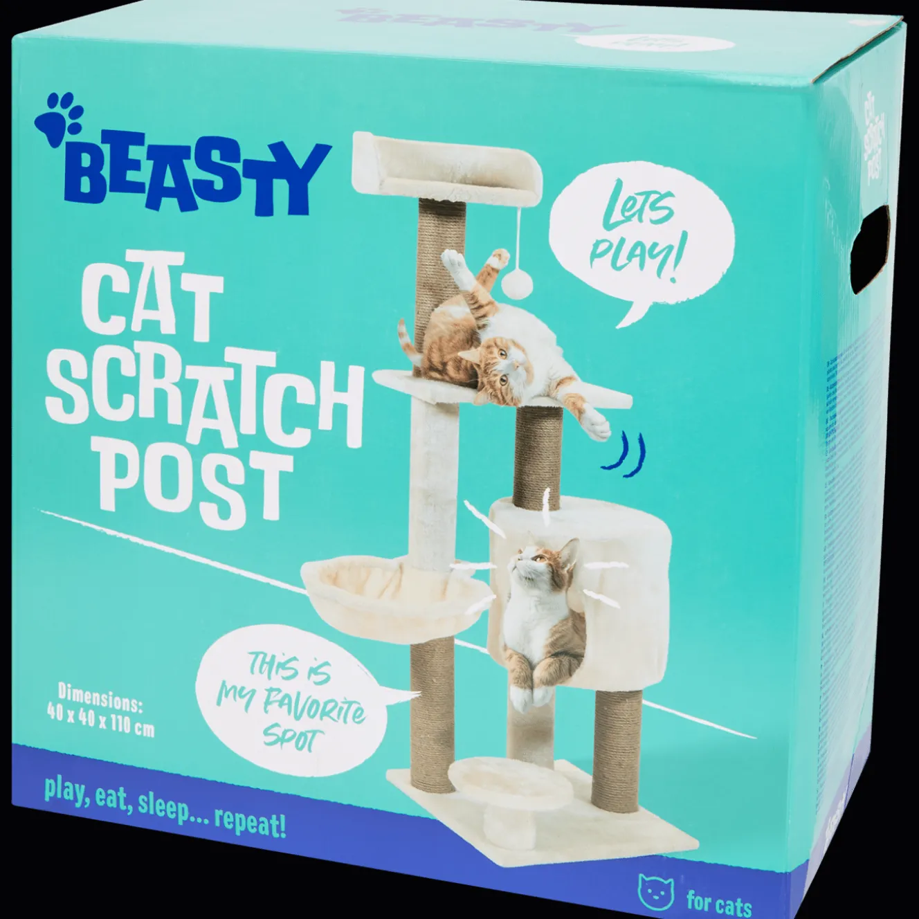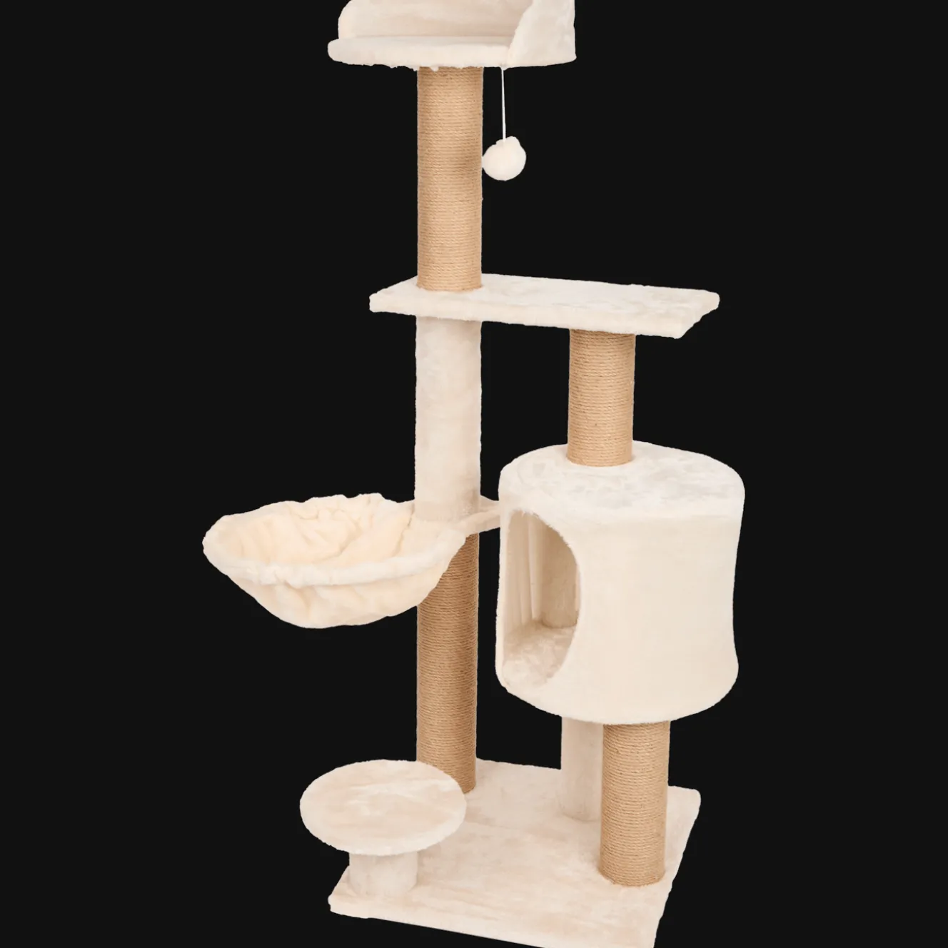 Met deze krabpaal voor katten heeft je kat de mogelijkheid om zich op te rollen in de verschillende mandjes. En om zijn nagels te krabben aan de palen natuurlijk. Mocht je kat zich willen verstoppen, dan is er zelfs een klein huisje waar hij in kan kruipen. Ook hangt er een leuk speelgoedje aan de krabpaal waar je lieve beest een hoop plezier mee heeft. De krabpaal past door de beige, neutrale kleur in ieder interieur.