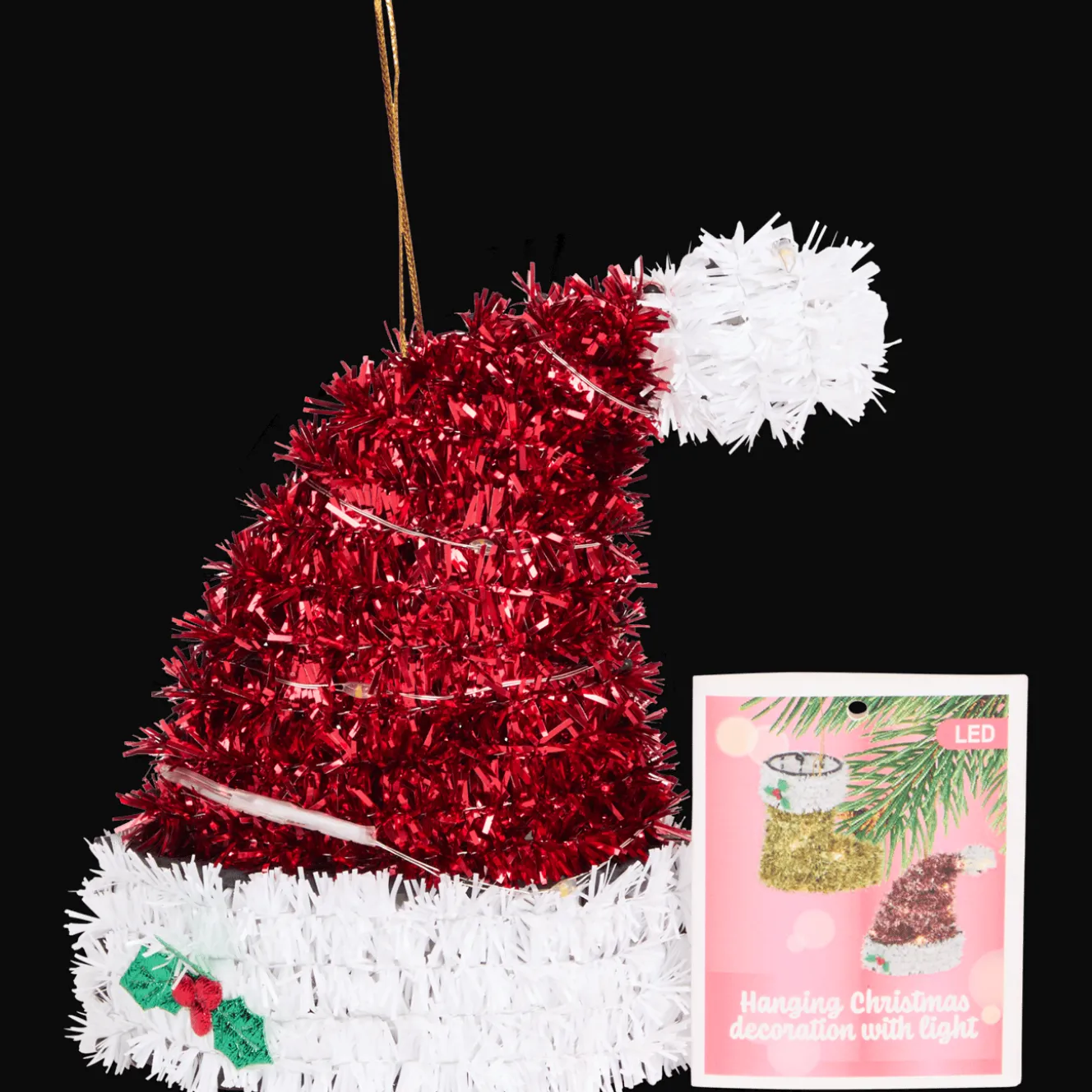 Hang hem op een leuk plekje in huis of in je kerstboom en je feestdagen kunnen niet meer stuk! Inclusief batterijen.
