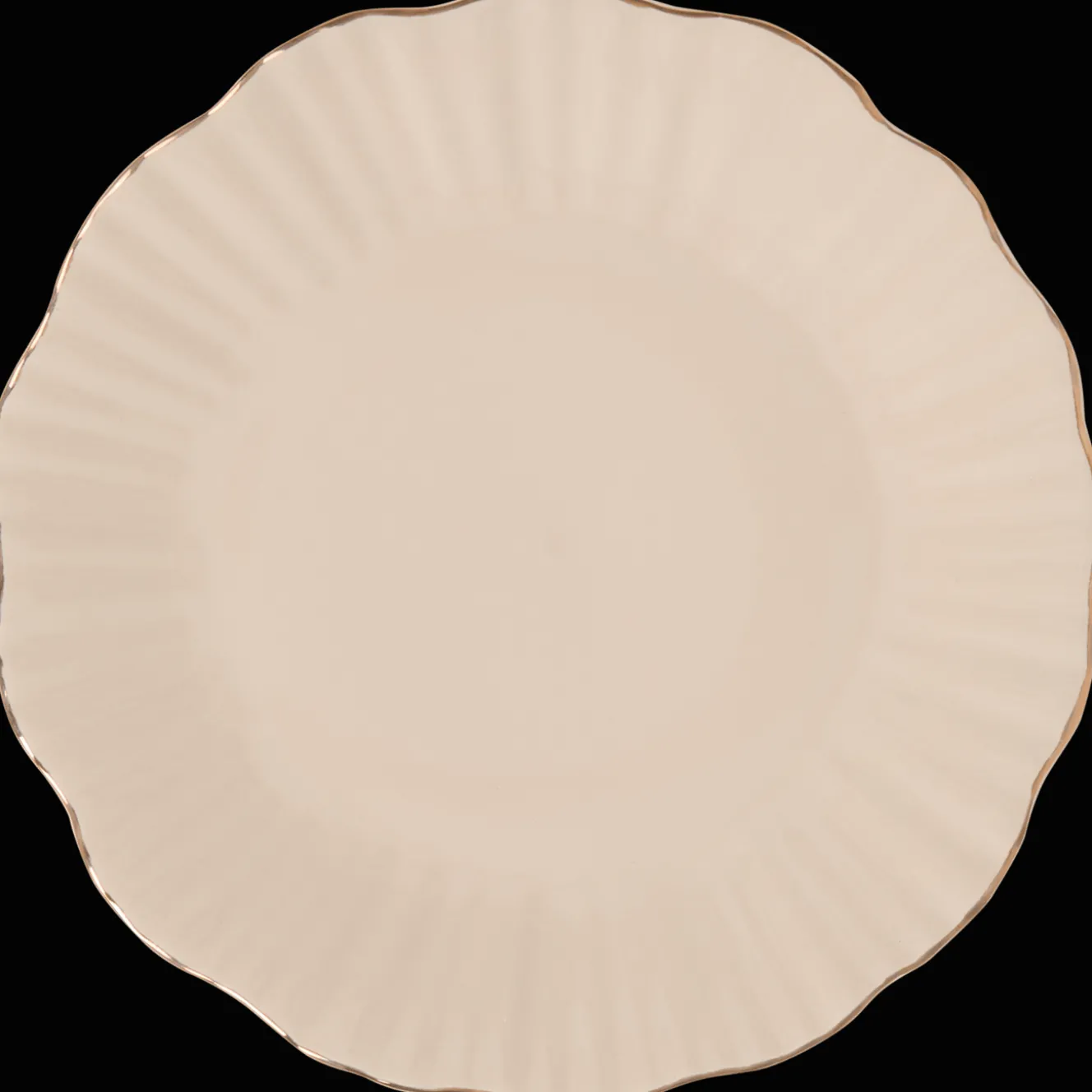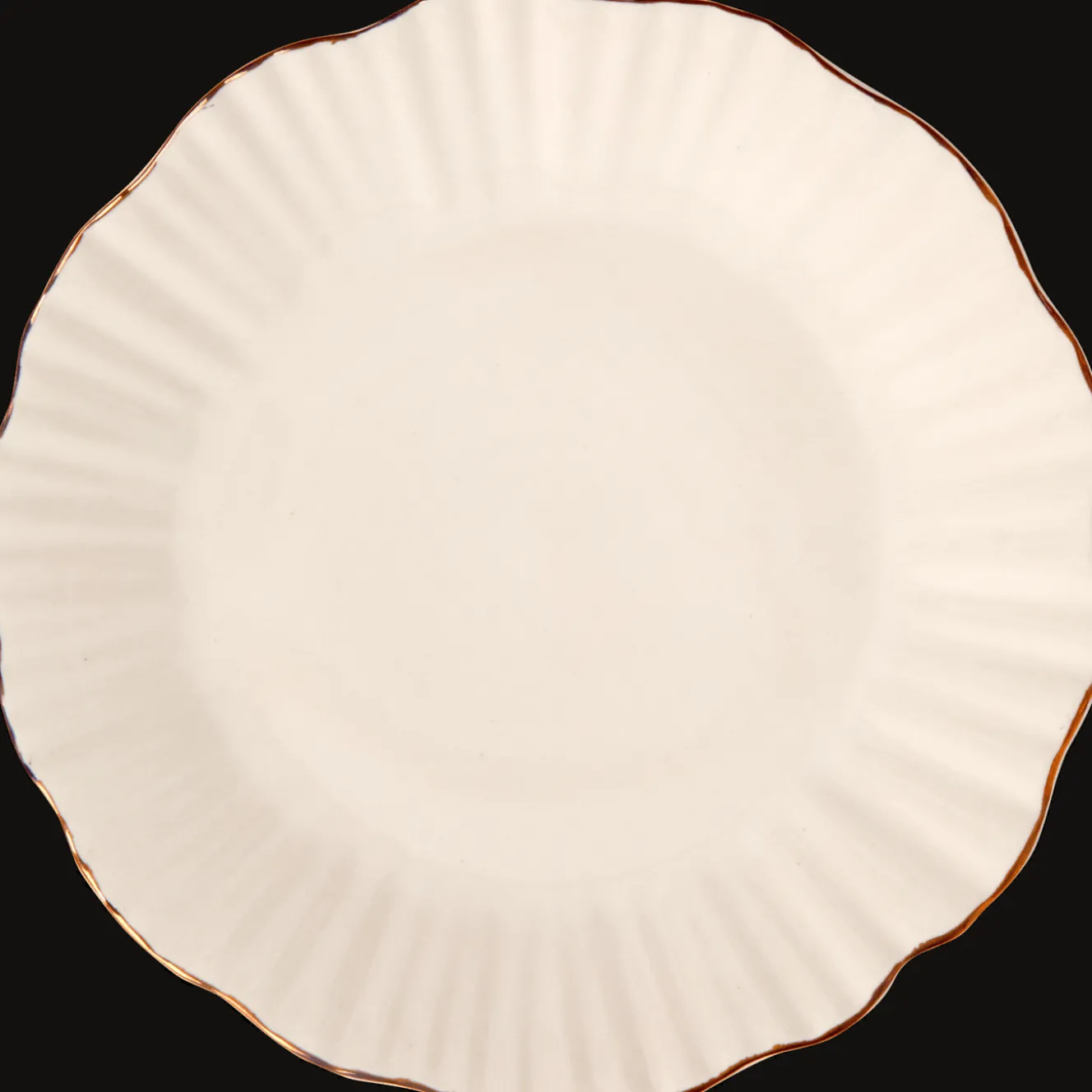Dit chique bord met geribbelde randen en een gouden touch maakt elke maaltijd speciaal.