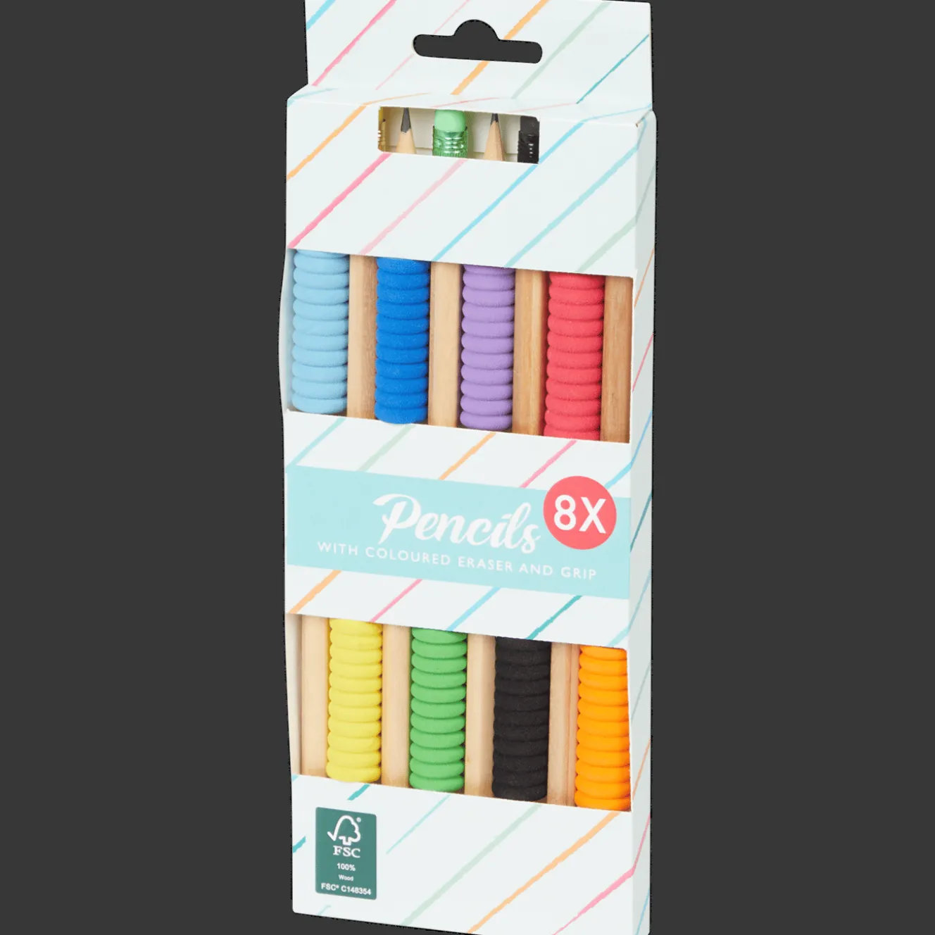 Handige set potloden met extra grip, in verschillende kleuren.