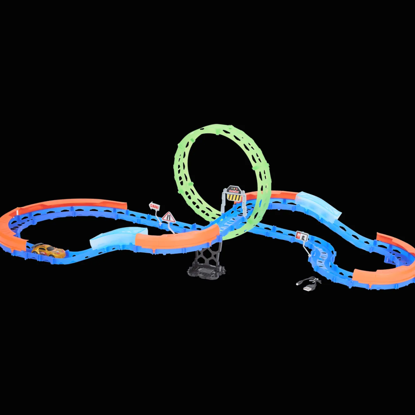 Ready, set, go! Is jouw kleintje helemaal gek op auto’s? Deze stoere racebaan is goed voor urenlang speelplezier. De gekleurde baan zit vol spannende bochten en je kunt de raceauto heel makkelijk opladen met een USB-kabel.